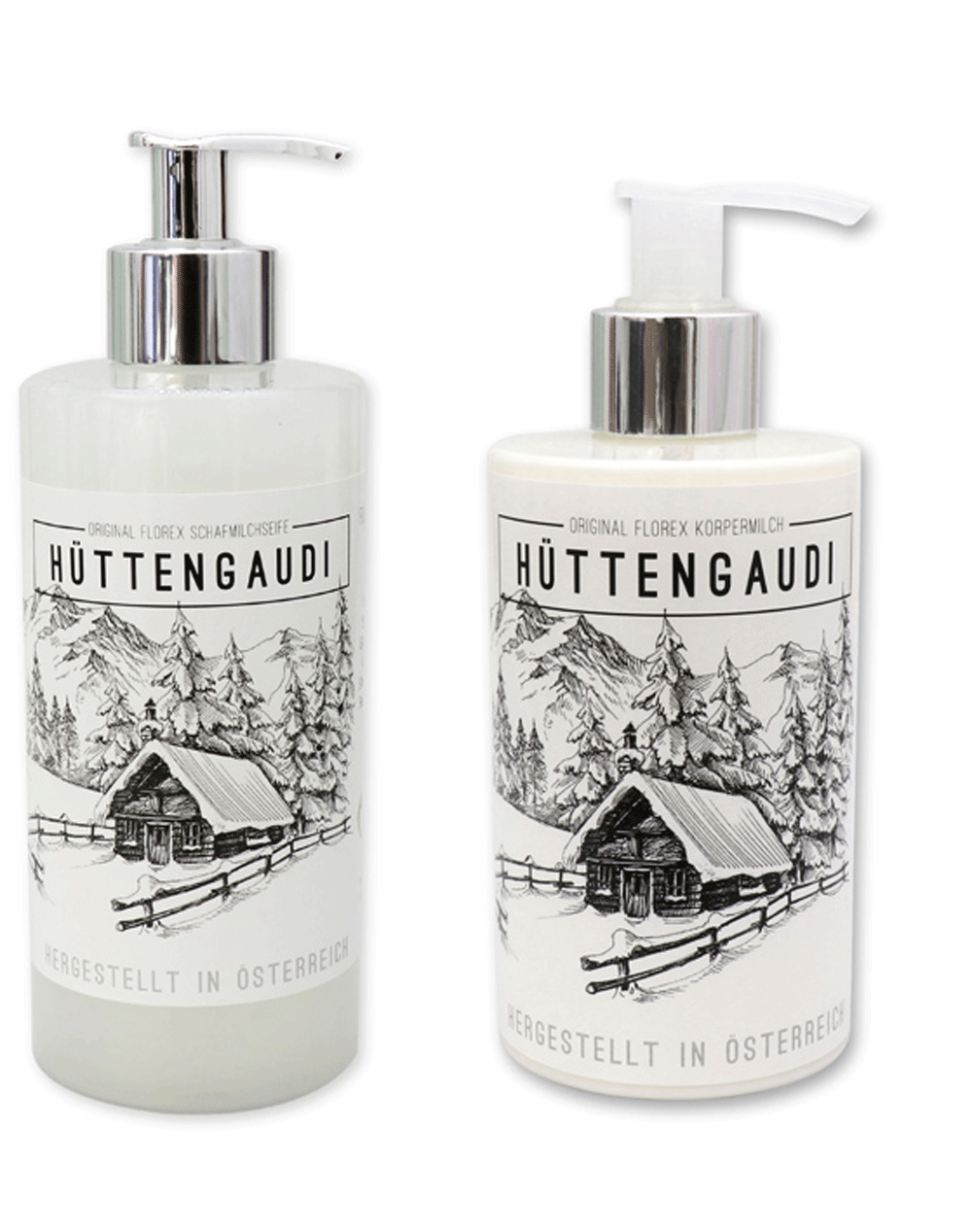 Schafsmilchseife 400 ml und Bodymilk 250 ml aus Schafsmilch aus der Serie Schafmilch Schneerose Hüttengaudi. Die Schafsmilchseife reinigt die Hände sanft und hinterlässt ein frisches, angenehmes Hautgefühl. Für alle Hauttypen geeignet. Der Inhalt der Flasche ist 400ml. Die Florex Körpermilch eignet sich mit ihren wertvollen Inhaltsstoffen für eine reichhaltige Pflege.Sojaöl, Aloe Vera Gel und biologische Schafmilch sorgen für weiche und gepflegte Haut.Schneerose - Die Schönheit und der liebliche Duft verzaubern die winterlichen Gärten. Beide Produkte sind mit biologischer Schafmilch aus Österreich und auch dort hergestellt. Beides aus der Serie Hüttenzauber