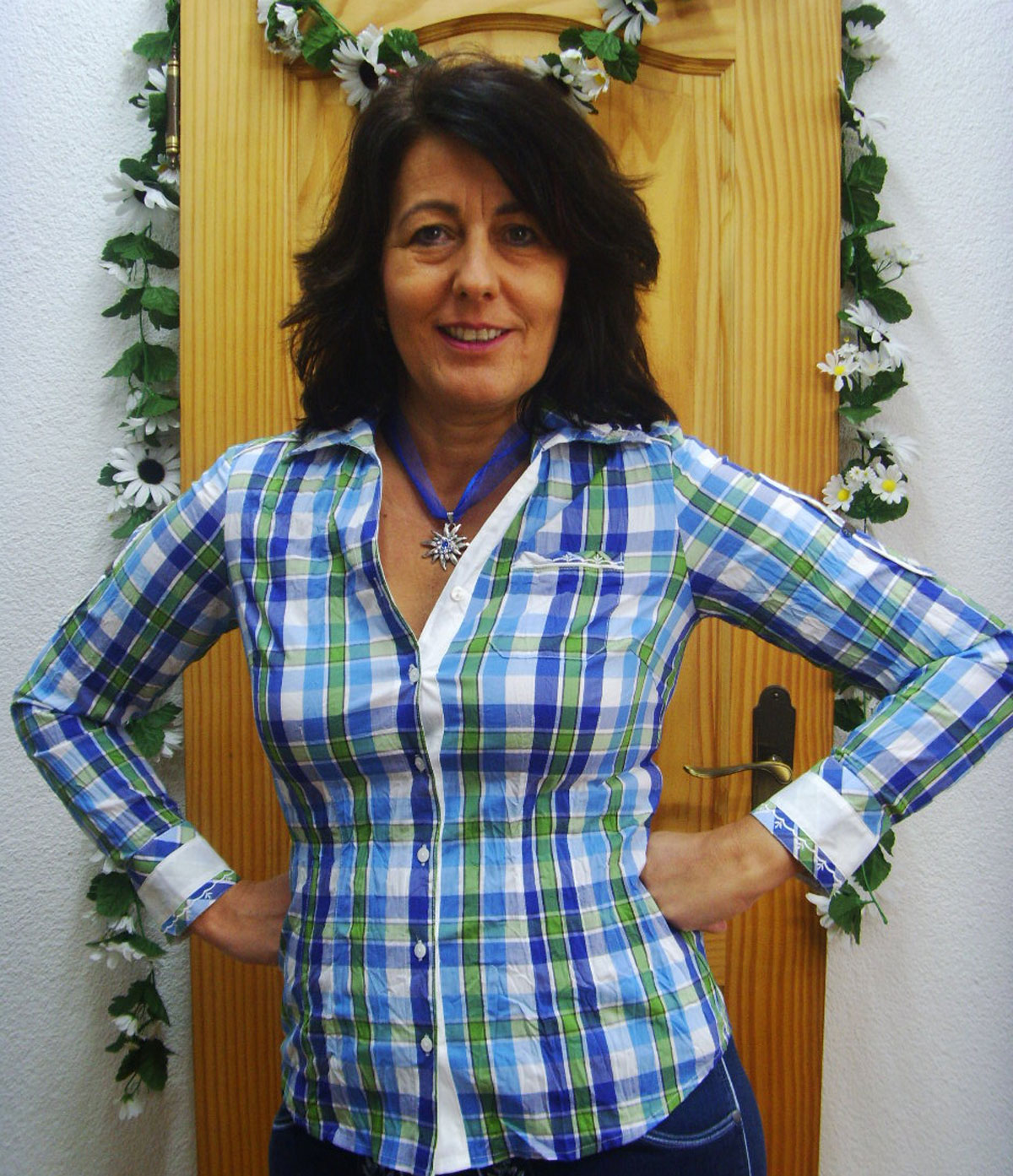 Diese Bluse ist eine modische Trachtenbluse mit taillierter Schnittführung und einem leicht gebogenem Saum. Am Kragen und an den Manschetten ist ein weißer Kontrast. Weiter hat die Craschbluse am Kragen, Manschette und auf der Brusttasche eine Stickereizier. Diese Craschbluse ist eine Krempelarmbluse. Das schöne ist, das diese nicht gebügelt werde muss. Eine total modische und trendige Bluse. Diese Bluse ist nicht nur zum Oktoberfest, sondern alltagstauglich zur modischen Jeans.
