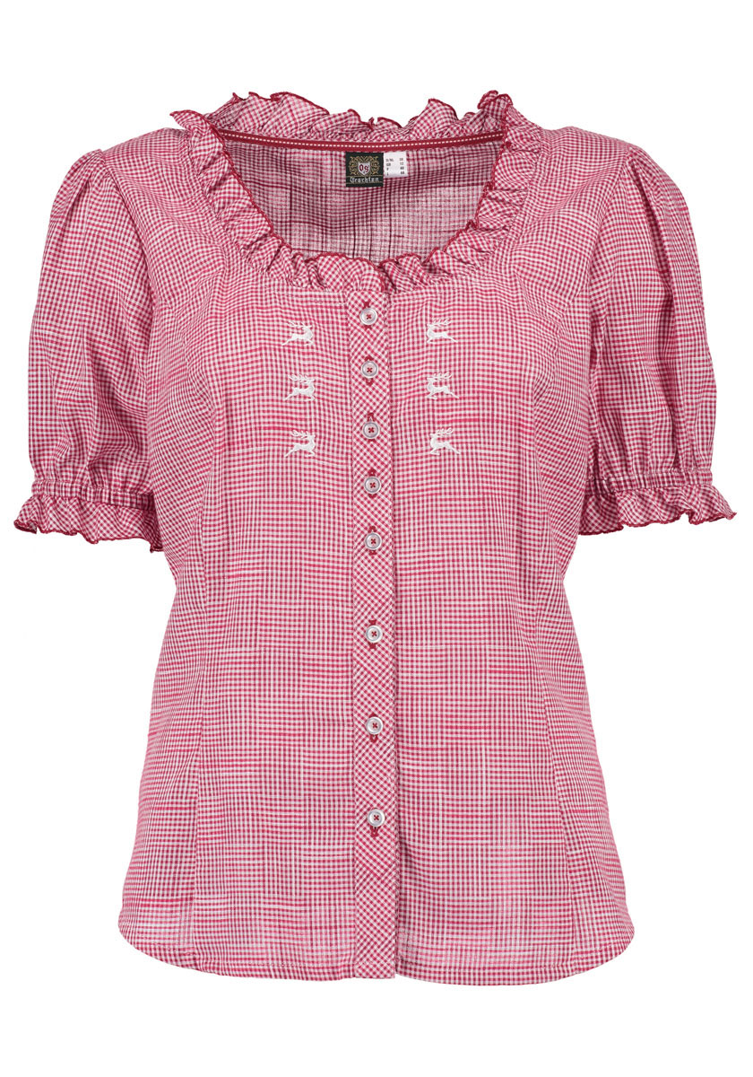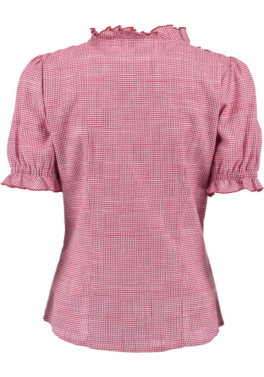 Startseite » Damen » Trachtenblusen » Orbis Damenbluse Rundhals Rüschen rot 1/2 Arm kleinkariert Trachtenbluse