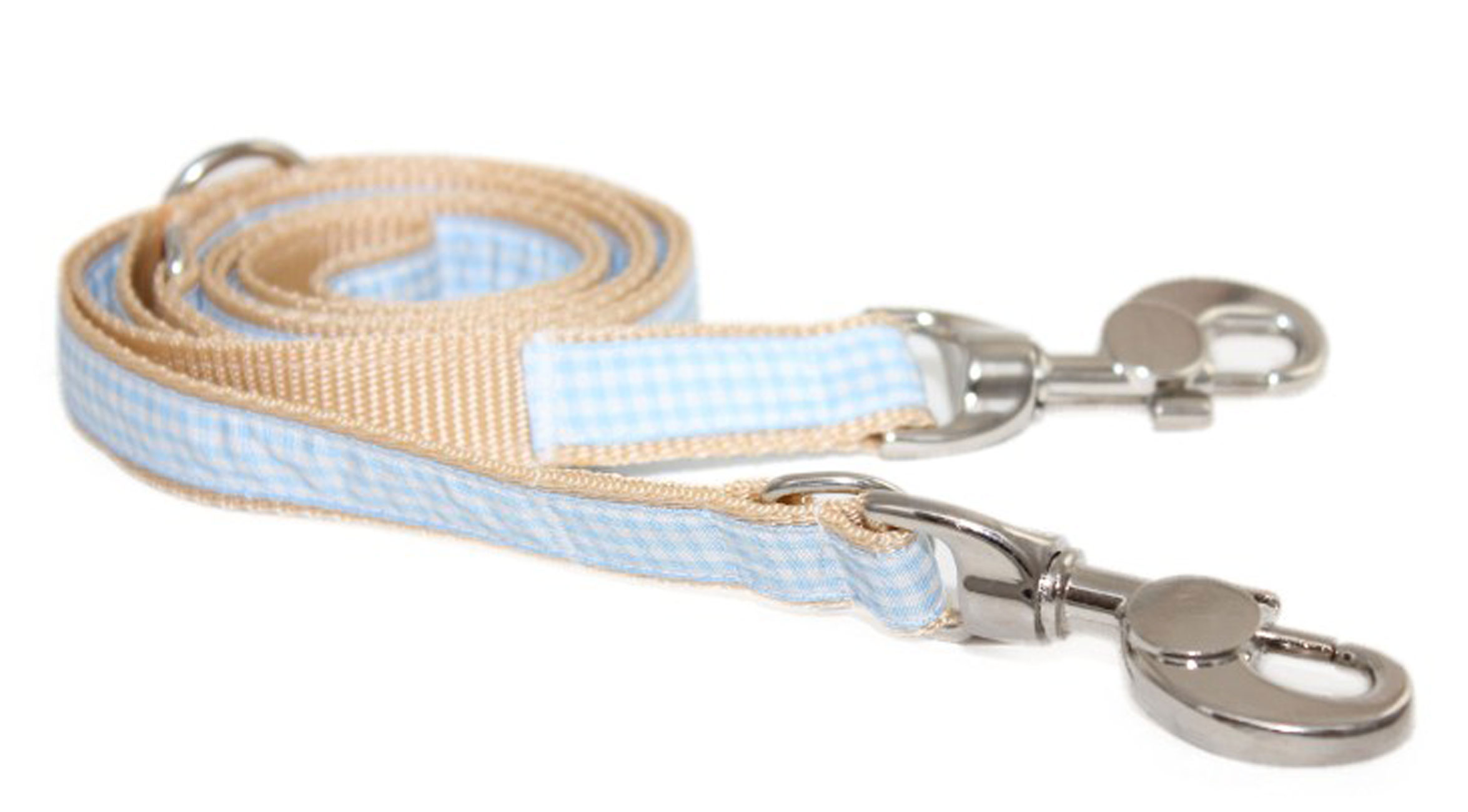 Ersklassige Hundeleine aus hochwertigem Nylon. Hellblau kariert und beige unterlegt ist diese Hundeleine. Die Hundeleine liegt leicht in der Hand und ist verstellbar. Auch diese Hundeleine ist in Deutschland in liebevoller Handarbeit hergestellt. Die Hundeleine ist ein nettes Geschenk als Mitbringsel oder auch für sich selber.