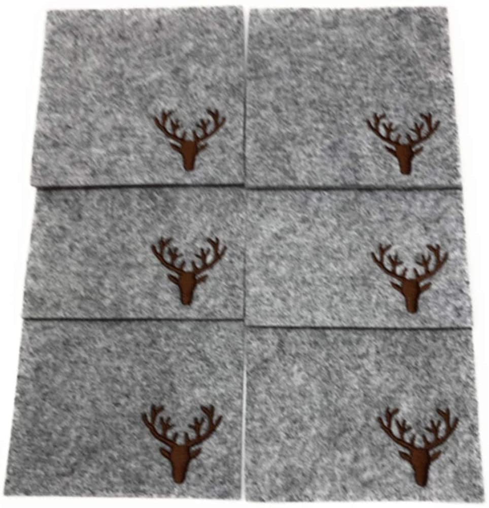Diese Glasuntersetzer aus Filz sind ein schöner Blickfang auf Ihrem Esstisch oder ihrer Bar. Die Untersetzer sind aus hellgrauem Filz mit einem gestickten Hirschkopf. Sie sehen nicht nur ausgesprochen hübsch aus, sie schützen auch ihre wertvollen Möbel vor Kratzern und Flecken.