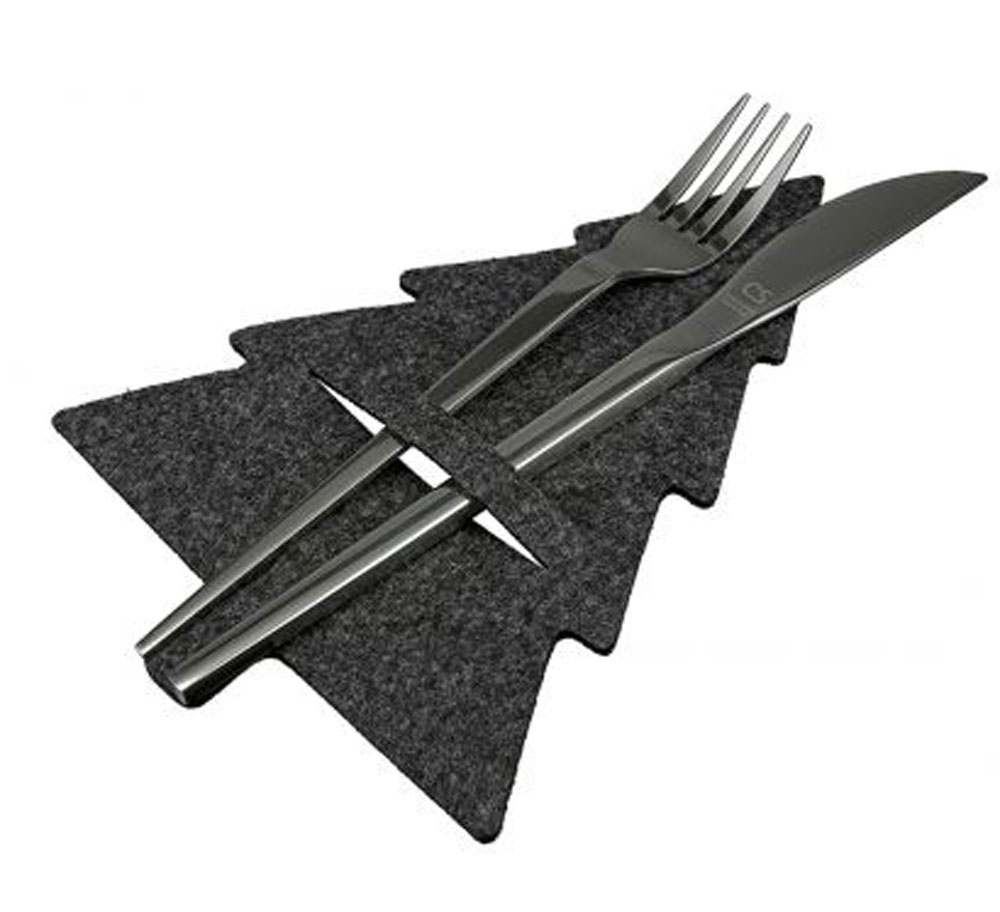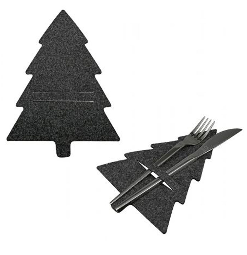 Dekoratives weihnachtliches Set bestehend aus 4 Tannenbäumen hellgrau als Bestecktaschen . Dieses weihnachtliche Set macht einen guten Eindruck auf dem Esstisch, er wird hiermit zur weihnachtlichen, festlichen Tafel. Gönnen Sie sich dieses kleines Extra oder verschenken Sie es zur Adventszeit.
