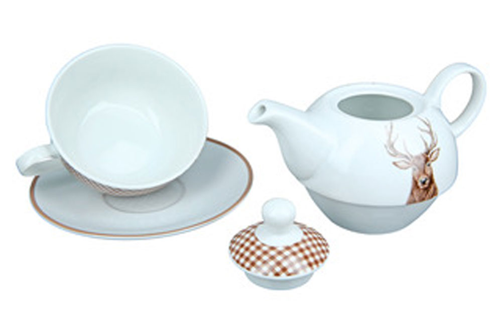 Startseite    »    MORE    »    Weihnachts-Shop 2025    »   Gilde Tee-Set Tea for one Hirschbüste kariert Teekanne, Teetasse Untertasse