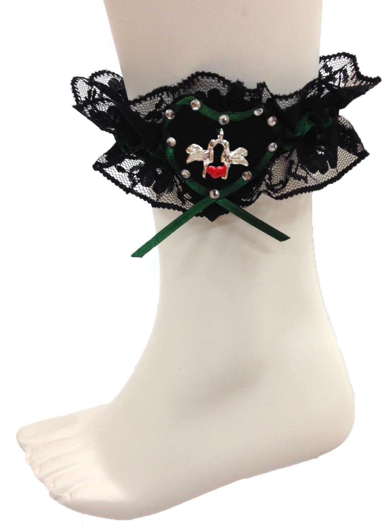 Loverli Fußschmuckband schwarz grün mit 2 Tauben Handarbeit - Kopie