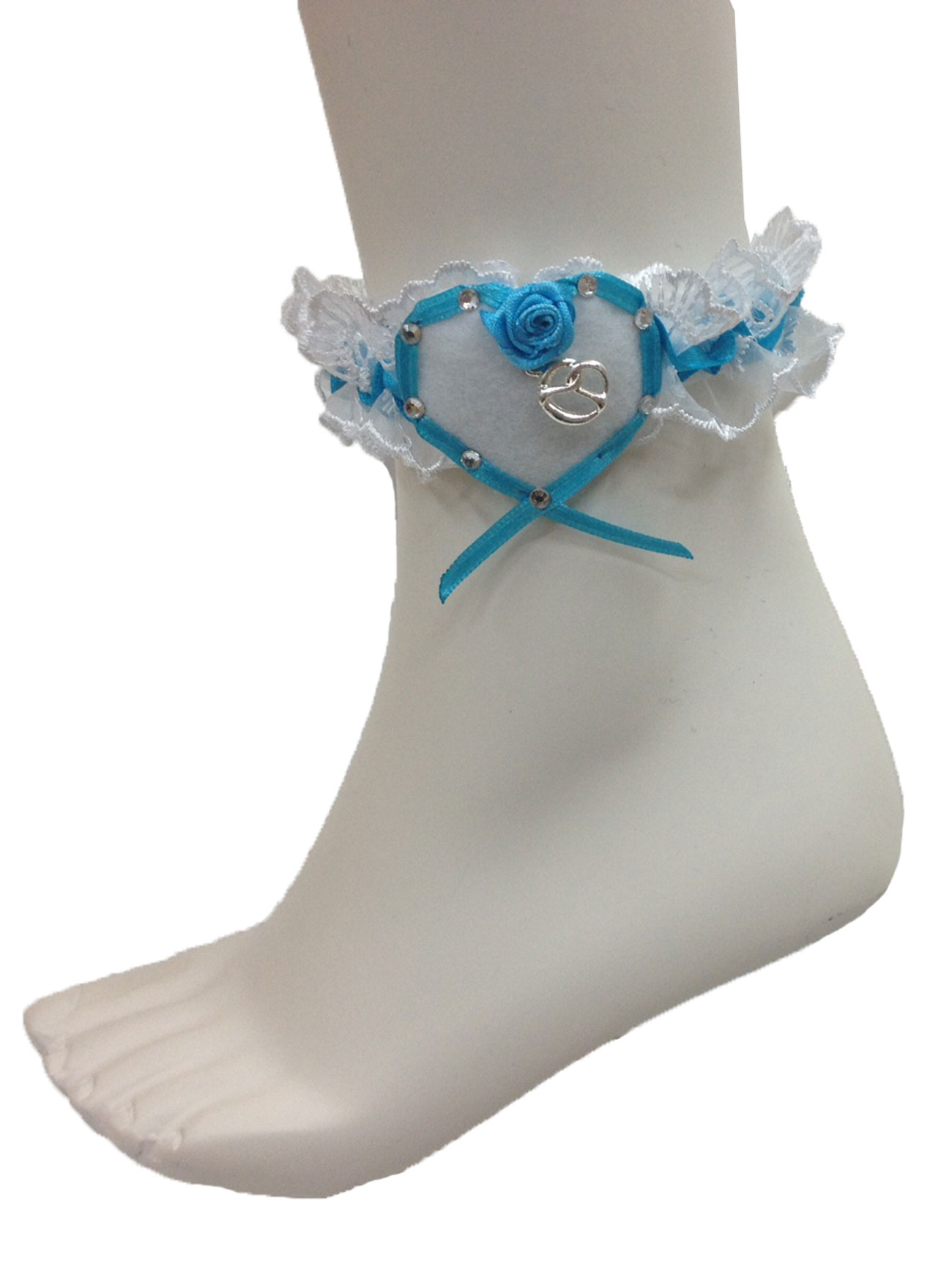 Mobile Preview: Loverli Fußschmuckband weiss türkis mit Brezel und Rose Handarbeit - Kopie