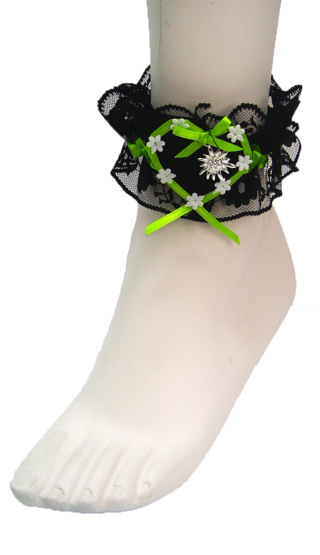 Der neueste Modetrend ein "Must Have" ist dieses tolle Fußschmuckband. Zum nächsten Oktoberfest oder zu nächsten Party geht es nur mit einem Fußschmuckband. Hochwertig und und edel, sowie aufwendig gearbeitet, gibt es für jedes Dirndl das passende G`schbuserl fürs Fußerl. Denken Sie daran, wenn Sie das Fußband rechts tragen, sind sie vergeben und link Single, also Freiwild für die Männerwelt.