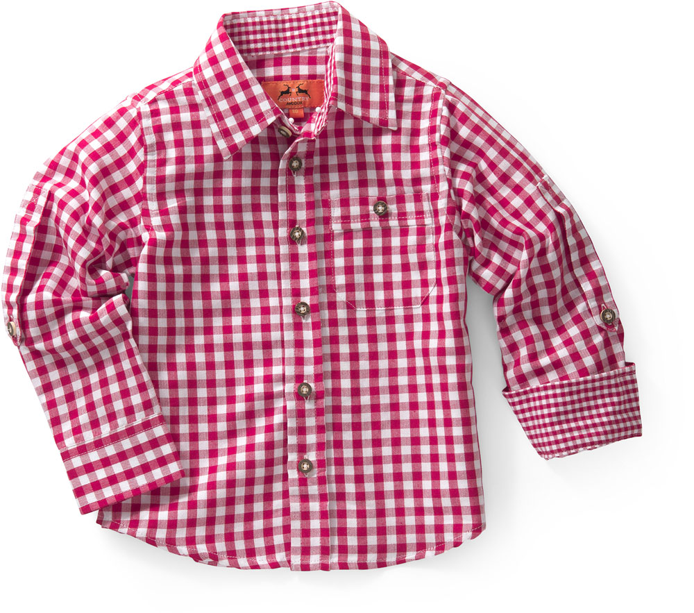 Kinder Trachtenhemd rot kariert edel und hochwertig. Das Kinder Trachtenhemd hat einen hohen Baumwollanteil. Das Kinderhemd ist bei 30° in der Waschmaschine waschbar. Das karierte Trachtenhemd für Kinder ist pflegeleicht, angenehm zu tragen und strapazierfähig. Das Hemd zeichnet sich durch liebevolle Details aus. Die Knöpfe in Hirschhornoptik könnten von Trachtenhemden für Herren stammen, genauso wie die aufgesetzte Brusttasche Die Manschetten sind von innen aus kleinerem Karostoff. Die Ärmel sind krempelbar und mit einem Riegel versehen. Karierte Trachtenhemden passen perfekt zur Lederhose, sehen aber auch toll zur Jeans aus.