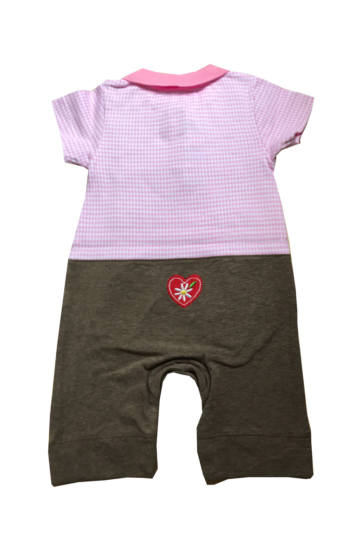 Süßer Baby Kurzoverall in rosa mit applizierten Hosenträgern und gesticktem Steg.
